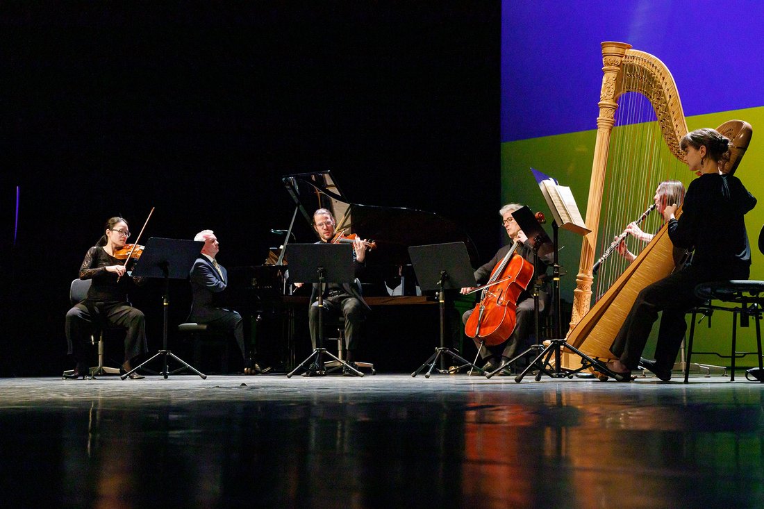 Anrührend war gleich der Beginn: Der Opernchor trug begleitet von einem Bläserquartett die ukrainische Nationalhymne vor, zu der das Publikum geschlossen aufstand. Es folgten Arien von Musiktheater-Solist*innen, die am Klavier begleitet wurden, kammermusikalische Beiträge von Orchester-Mitgliedern sowie weitere Chorwerke, bei denen Chorsänger*innen auch solistisch brillierten. Darüber hinaus sorgten Mitglieder des Schauspielensembles für die leisen, nachdenklichen Töne mit Gedichten und Liedern für den Frieden und gegen den Krieg. Den Schluss bildete das „Gebet für die Ukraine” des ukrainischen Komponisten Mykola Lyssenko, das von einem Blechbläser-Ensemble vorgetragen wurde.